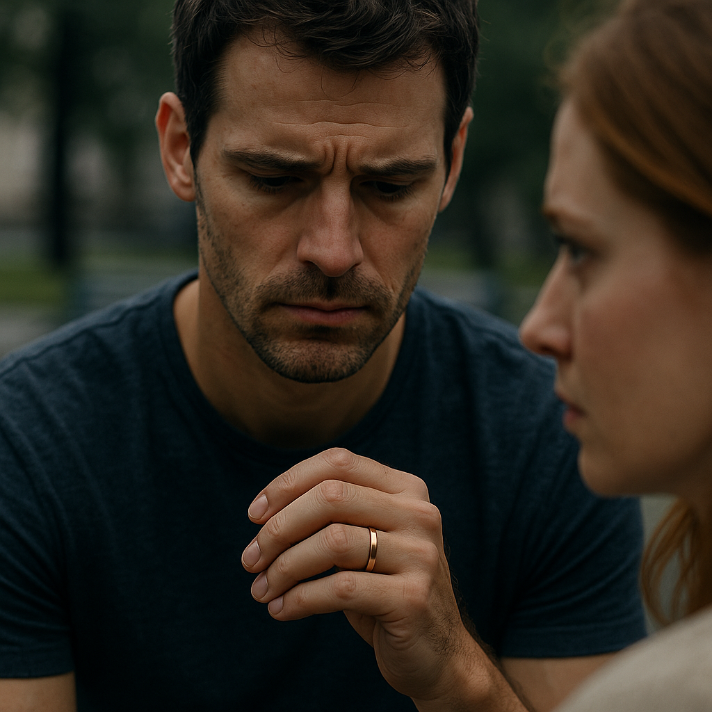 Он не попытался скрыть правду, его рука с кольцом оставалась открытой. С лёгкой усмешкой, наполненной ощущением вины, он ответил: