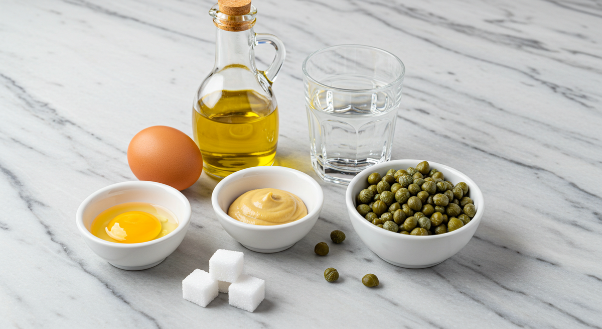 3. Постепенно вливайте растительное масло, продолжая активное перемешивание. Это создаст нужную эмульсию. После достижения желаемой густоты добавьте уксус и тщательно перемешайте. В конце мелко нарежьте и добавьте каперсы — это придаст соусу уникальную солоновато-пикантную ноту.