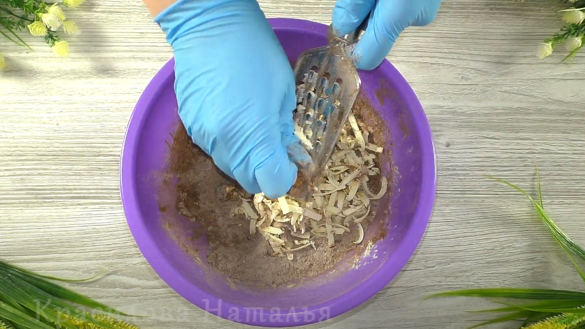 Затем мы натираем холодное сливочное масло и перетираем его с сухими ингредиентами до состояния крошки. После этого крошку стоит поместить в холодильник, чтобы она охладилась. Далее — творожная начинка.