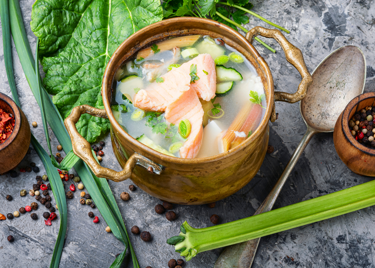 Освежающий холодный суп с ревенем и рыбой для летних дней