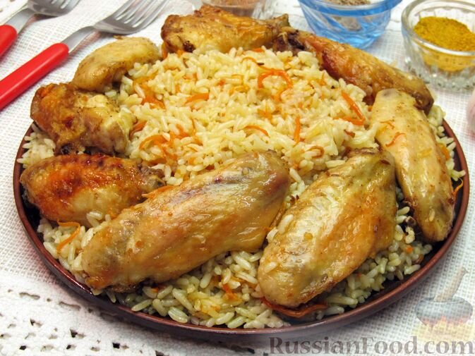 Для любителей традиционных сочетаний можно предложить куриные крылышки, запеченные с рисом. Приготовление в духе совместит ароматы и вкусы, а рис впитает все соки и специи.
