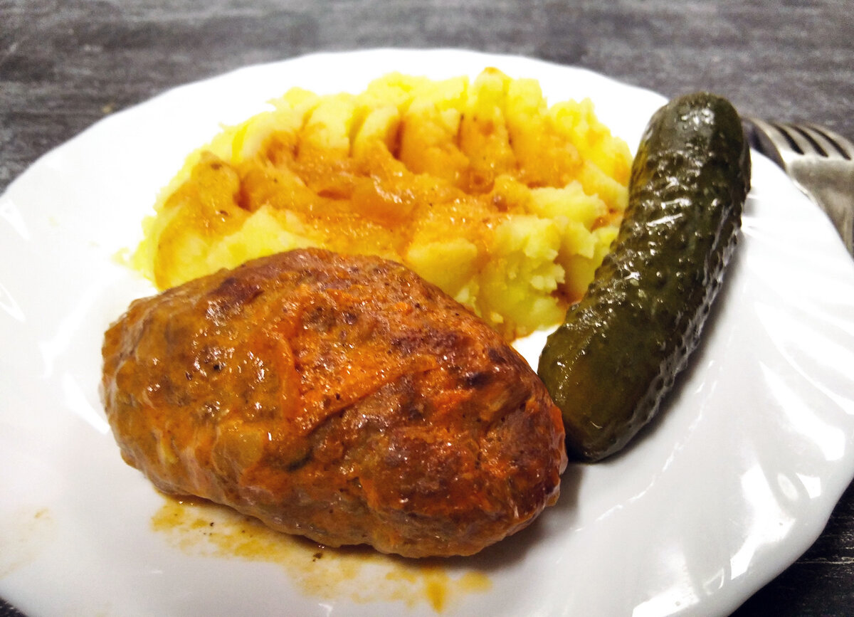 На сковороде можно обжарить лук, добавить к нему 3 столовые ложки сметаны и 1 столовую ложку томатной пасты, разбавляя водой. Эта заливка добавляется к котлетам во время тушения, чтобы они пропитались вкусом соуса. Через 10 минут при низком нагреве с приоткрытой крышкой блюдо можно подавать к столу. Готовые котлеты подаются с отварным картофелем и малосольными огурцами — так же, как и свежий помидор для дополнительного вкуса.