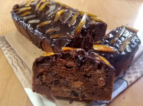 Поставьте форму в разогретую до 180 °C духовку и выпекайте в режиме "верх/низ" около 40-45 минут. Готовность проверяйте с помощью деревянной палочки: она должна выйти сухой. После выпекания дайте кексу немного остыть на решётке.