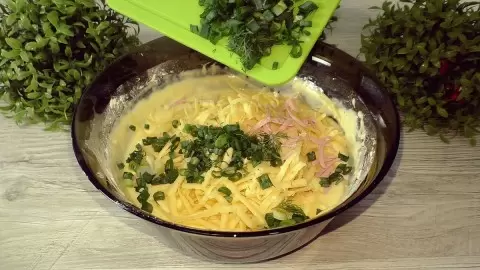 Теперь пора заняться начинкой: натереть сыр на крупной терке, нарезать помидор и колбасу, а также мелко порубить зелень. Все ингредиенты объедините в одной емкости. Затем разогрейте сковороду с растительным маслом. Выложите тесто, формируя лепешку, и жарьте около 2 минут с каждой стороны до золотистой корочки.