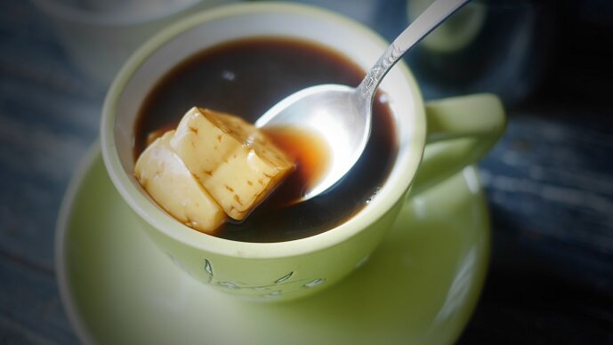 - Приготовление: Заварите кофе и, при необходимости, процедите его. Добавьте сахар и тщательно перемешайте. На дно чашки положите нарезанный сыр и залейте горячим кофе. Такой вариант можно кушать по желанию: сначала насладиться напитком, а потом съесть расплавившийся сыр или наоборот.