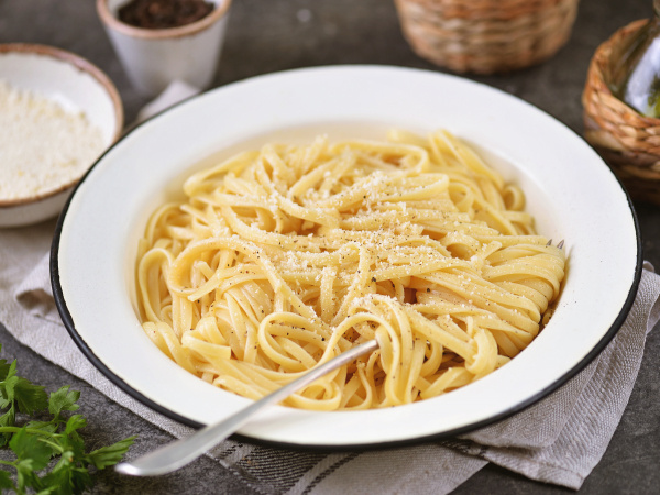 Приготовление: Отварить спагетти, затем перемешать с маслом и пармезаном, добавив перец и соль. Довольно просто и очень вкусно!