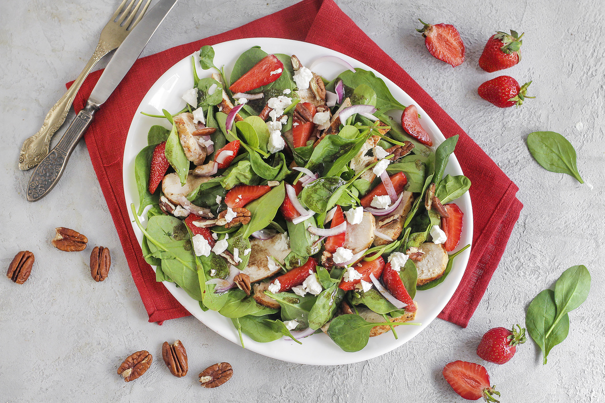 Салат с курицей и свежей клубникой стал настоящим кулинарным фаворитом благодаря своей уникальной комбинации вкусов и текстур. Ключевым ингредиентом в этом блюде являются орехи пекан, которые известны своей высокой питательной ценностью и великолепным вкусом. Эти орехи действительно можно назвать королями, умело зная, как выбрать самые свежие в скорлупе: просто потрясите их, и если будет слышен громкий треск, они, возможно, уже не свежие.