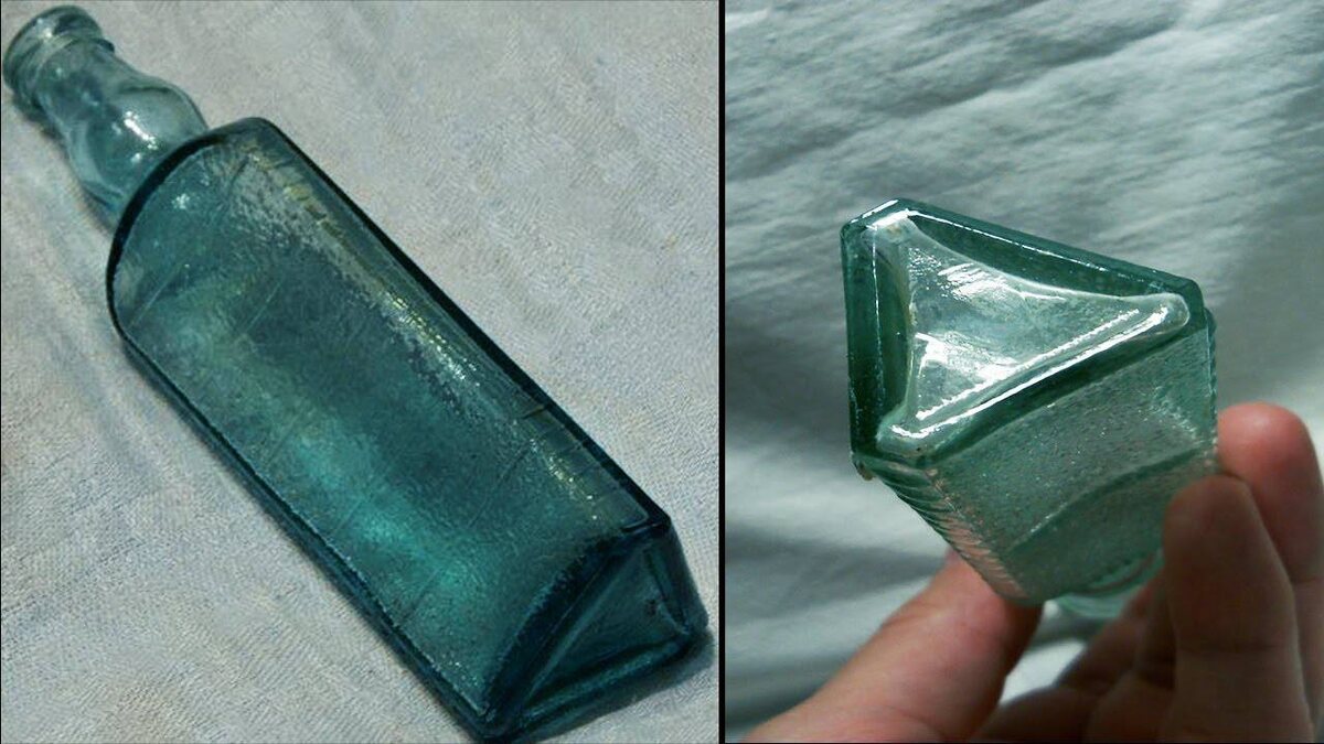 Треугольная форма бутылки была выбрана исходя из строгих соображений безопасности и практичности. В условиях, когда стеклянные бутылки от лимонада, пива или молока могли легко перепутаться и повторно использоваться, важно было создать уникальную форму, которая бы мгновенно сигнализировала о внутреннем содержимом. Особенно это касалось уксусной эссенции в концентрации 70%, способной вызвать серьезные ожоги при случайном употреблении.