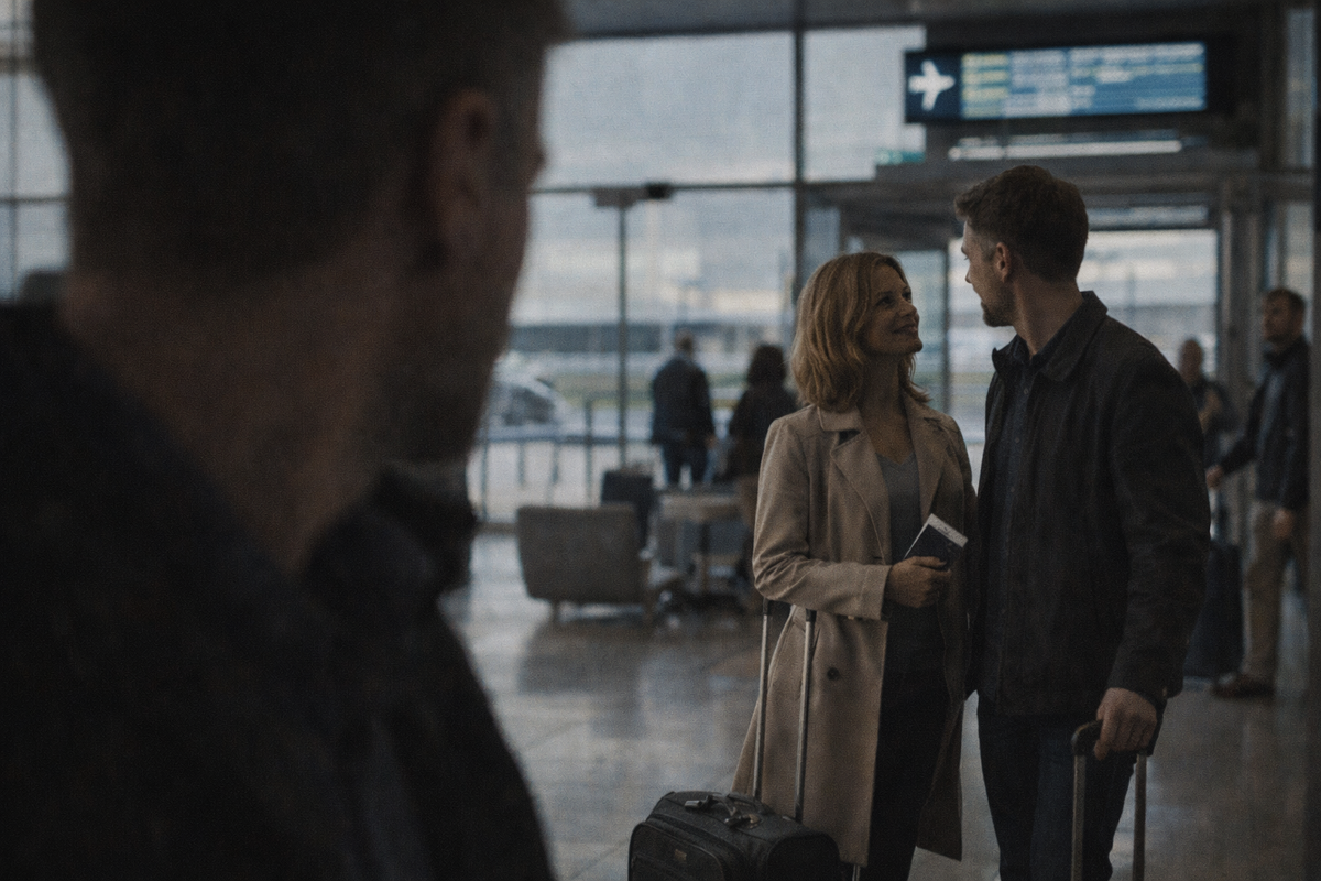 Лена стояла у стойки регистрации, в светлом пальто, с небольшим чемоданом. Она выглядела совсем не так, как женщина, которая вторую неделю не отходит от постели своей больной матери в глухой деревне.
