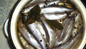 Если хотите получить нежную и ароматную хамсу с пряным вкусом, следуйте следующему рецепту. Тушки моют и потрошат, после чего укладывают в чистую эмалированную посуду, посыпая крупной солью в количестве 100-300 грамм, в зависимости от предпочтений. Специи добавляют по одной-две чайные ложки.