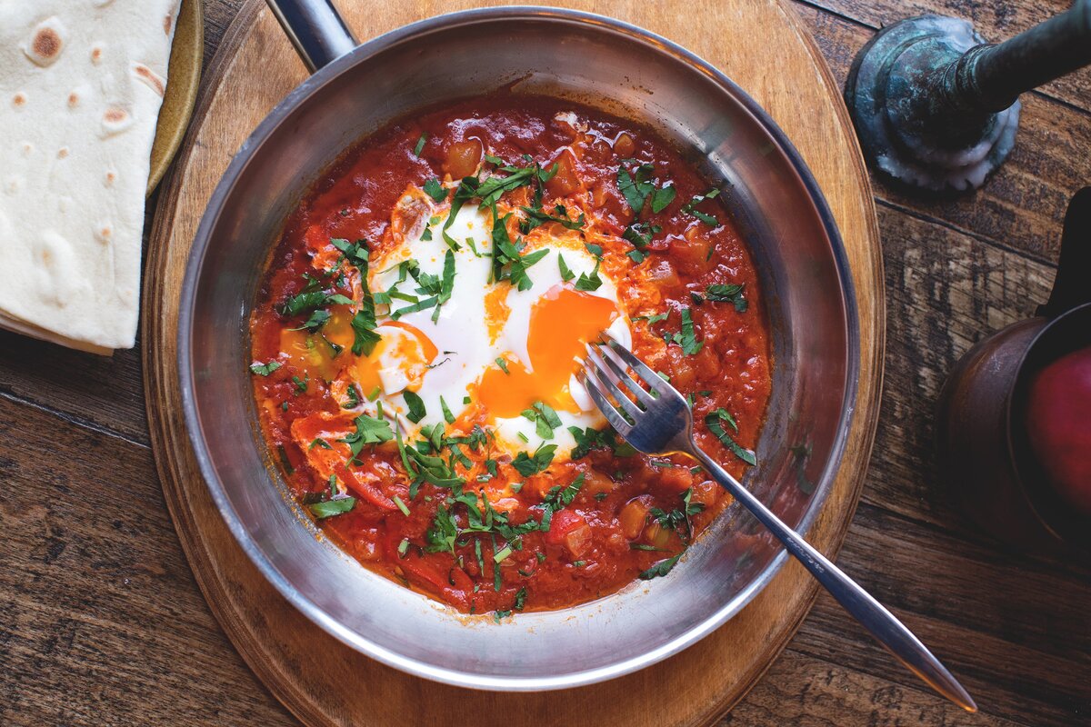 Эта ароматная овощная композиция с тремя яйцами — идеальный вариант для уютного завтрака или обеда. Шакшуку лучше всего подавать прямо в сковороде — так соус остается насыщенным и вкусным. Откройте для себя рецепт знаменитого шеф-повара Джасура Дадаева из Laffa Laffa.