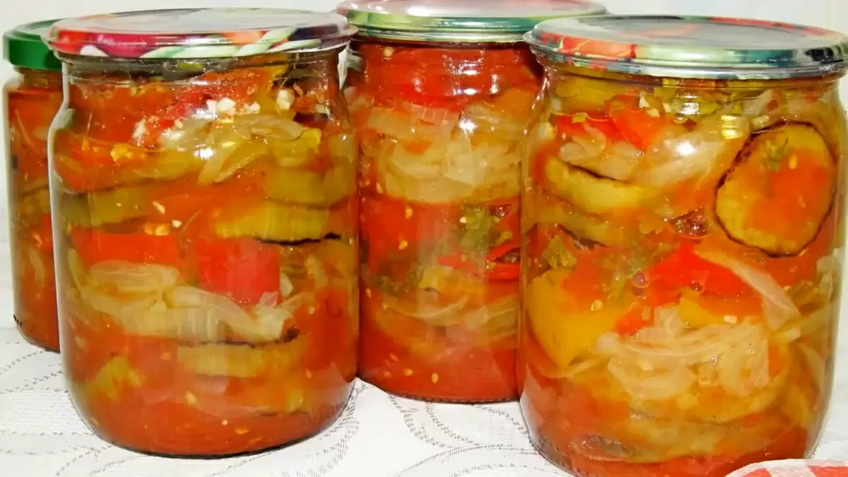 Порядок выкладывания остается на усмотрение повара, однако верхний слой должен состоять из помидоров. По завершении наполнения банок крышками, их стерилизуют в кипящей воде на протяжении 30 минут. Это обеспечит надежную консервацию.