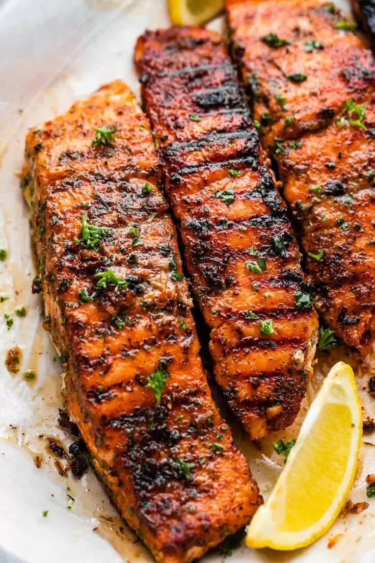 Лосось не просто рыба, а настоящая сокровищница полезных веществ: он богат омега-3 жирными кислотами, белком и витаминами группы B. При жарке на гриле он обретает восхитительную текстуру с хрустящей корочкой и мягким, сочным сердцем. В результате получается идеальное сочетание: корочка, подчеркивающая сладость рыбы, и нежный, богатый вкус, который перетягивает на себя все внимание.