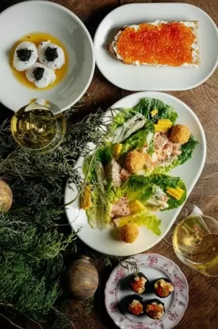 В Urban Winery готовы удивить: здесь запустили специальное новогоднее меню, где оливье подают в тарталетках, вместе с оригинальными бутербродами с икрой, оформленными в винтажных икорницах. Не обошлось и без крабового салата, который подают с аранчини — хрустящими рисовыми шариками. Ко всему этому подаются пузырящиеся коктейли и сладкие напитки, вдохновленные символами праздника: имбирные пряники и мандарины.