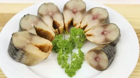 После завершения процесса соления, достаньте рыбу из маринада и обсушите её. Ваша скумбрия в луковой шелухе готова к подаче!