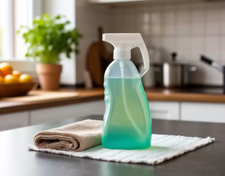 Теперь пора начинать борьбу с жиром! Просто распылите полученное средство на загрязненные участки и дайте ему время подействовать — от 2 до 5 минут, в зависимости от степени загрязнения. После этого протерите поверхность влажной губкой или тряпкой, и при необходимости повторите процесс. В конце не забудьте смыть остатки средства теплой водой и вытереть поверхность сухой салфеткой.