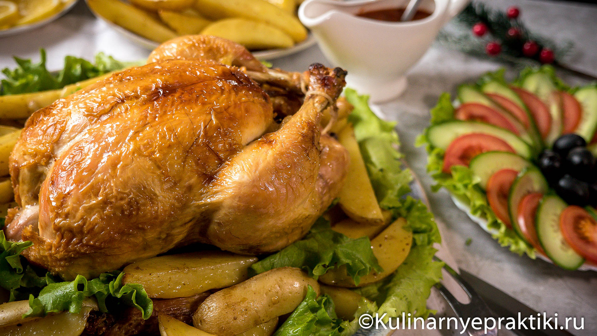 Чтобы получить нежную и ароматную курицу весом 1,8 — 2 кг, вам понадобятся: