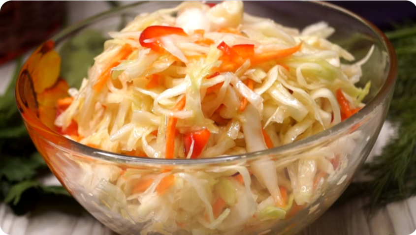 Белокочанная капуста нарезается тонкой соломкой и смешивается с морковью и перцем, чтобы создать яркий, слегка острый вкус. Добавляется легкая кислинка в виде уксуса и щепотка сахара, чтобы маринад подчеркнул естественную свежесть овощей. Гнет под тарелкой направляет процесс пропитывания, но времени достаточно всего несколько часов, чтобы результат заиграл новыми нотами.